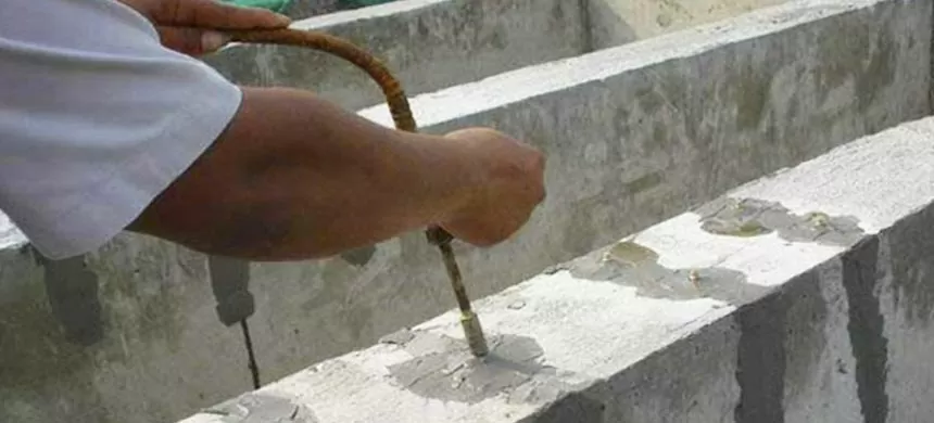 Микроцемент работает в виде водной суспензии, и ее стабильность — не менее важный параметр, чем тонкость помола. Нестабильная суспензия расслаивается, при этом тяжелые частицы оседают, водоотделение растет, и вместо однородного состава в трещину попадает сначала вода, а потом — густая паста, которая кольматирует капилляры и поры грунта. Качественный микроцемент должен обеспечивать устойчивость суспензии при водоцементном отношении не менее 1 без расслоения в течение минимум 60 минут. Добиться этого можно за счет обеспечения рационального зернового состава, введения специализированных ПАВ.